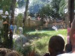 Ayer amaneció con una verdadera tormenta tropical. Los chicos protestaban que sería otro día perdido. Esperamos a que parara un poco el viento y nos aventuramos. La experiencia dice que en algún momento la lluvia para. Cuando llegamos al zoológico, todavía llovía con bastante fuerza. Compramos ponchos de plástico y paraguas y comenzó el paseo. Era obvio que muchos animales estarían protegiéndose de la lluvia, así que algunos espacios estaban vacíos. El zoológico tiene un monorail que recorre todo el perímetro. Aprovechamos para pasear pero desde ahí arriba no se veía mucho. Poco a poco la lluvia comenzó a disminuir y a eso de las 15 h, volvía el calor agobiante. Debemos haber sido los últimos a salir del zoo pero conseguimos hacer la visita. Nos faltó ver al tigre blanco pero conseguimos darle de comer a las jirafas. Claro, que Gonzalo quedó protestando porque no vio los murciélagos y los koalas y no sé qué más, pero entre el calor y el cansancio, empezaba a protestar por cualquier cosa. Fuimos a un supermercado a comprar cositas (galletitas, caramelos, bebidas, etc.) para prepararnos para el viaje de hoy. Cenamos en un restaurante y volvimos al hotel. Hoy vamos a recorrer 500 km aprox. hasta Jacksonville. Ahora estamos cerrando las valijas y preparándonos para el próximo tramo.