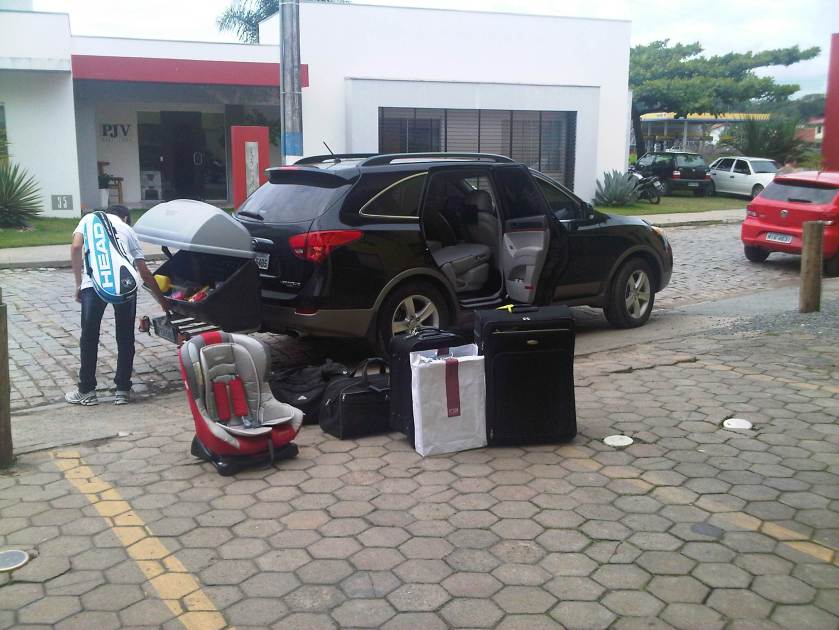 Después de un día de encierro, el equipo está listo para las dos últimas etapas. Ahora Filipe está haciendo magia para que todo vuelva a entrar en el auto; quizás para el próximo viaje todo sea más fácil, y atención que ya hablo de un próximo viaje. Es que Filipe ya tiene la mente puesta en la próxima travesía, y como siempre, va dando información en forma progresiva. Nos esperan casi 700 km en no sé cuántas horas. Próximo destino: São José dos Campos, en São Paulo. El clima sigue nublado y con lluvia. ¡Nos vemos!